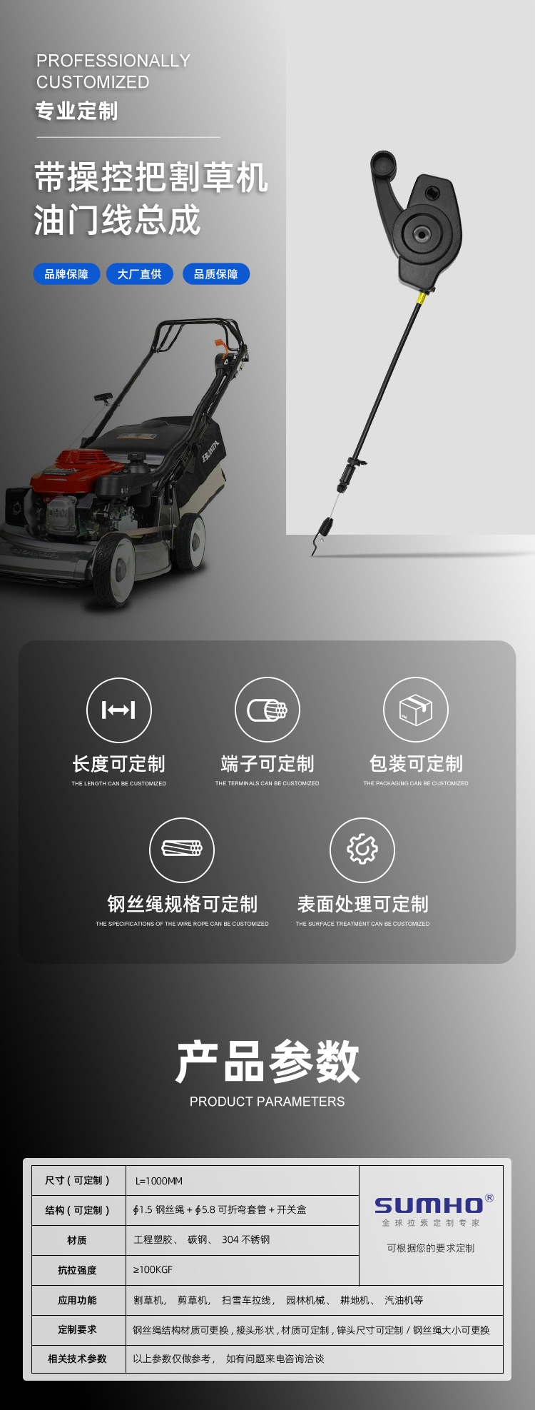 带操控把割草机油门线总成